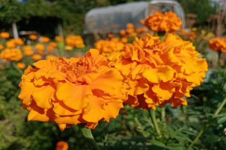 Fluweel en goudsbloem zijn niet alleen lichtpuntjes voor schoonheid, maar echte bewakers met een doordringende geur, die niet wordt getolereerd door nematoden, bladluizen en zelfs de Coloradokever. Hun wortels geven speciale stoffen af die de grond zuiveren, terwijl de opvallende bloeiwijzen plaagvlinders weglokken van je kool.